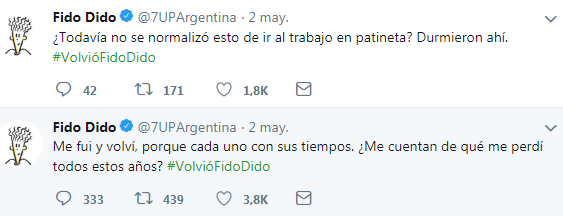 A solo un día de su reaparición oficial en Twitter el jueves 2 de mayo, el hashtag #VolvióFidoDido se convirtió en trending topic en Argentina.