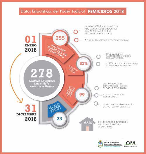 En el año 2018, se registraron 278 femicidios. En el 66% de los casos, el crimen se cometió en el hogar.