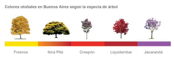 Cada otoño, los 431.326 árboles que habitan la Ciudad cambian la fisonomía y coloración de su follaje, y Buenos Aires transforma su paleta de colores. Prendidas a la copa o al pie de los árboles, sus hojas rojas, amarillas y anaranjadas contrastan con el gris de la gran ciudad. Se instalan en calles y veredas, y los barrios se convierten en imágenes de postal.