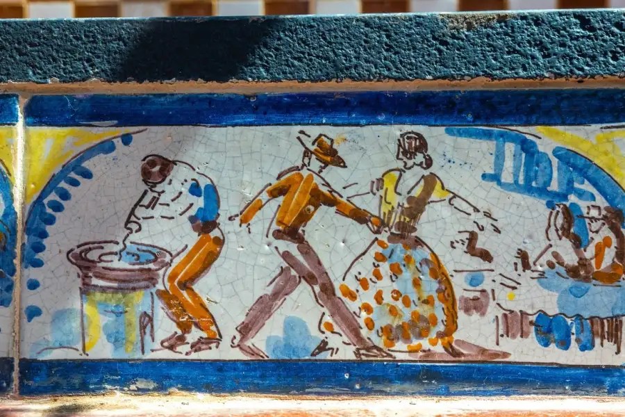 Construido en 1929, el Patio Andaluz es un jardín histórico que conserva una serie de clásicos azulejos sevillanos con representaciones de episodios de El Quijote, la obra de Cervantes, y muchas escenas de la vida española clásica de antaño: juergas, duelos entre caballeros antiguos y el trabajo de alfareros, entre otras.